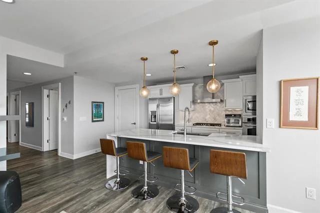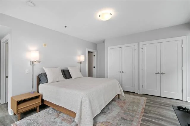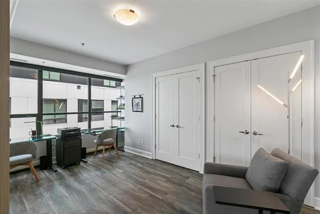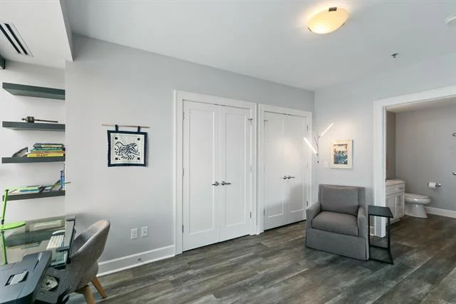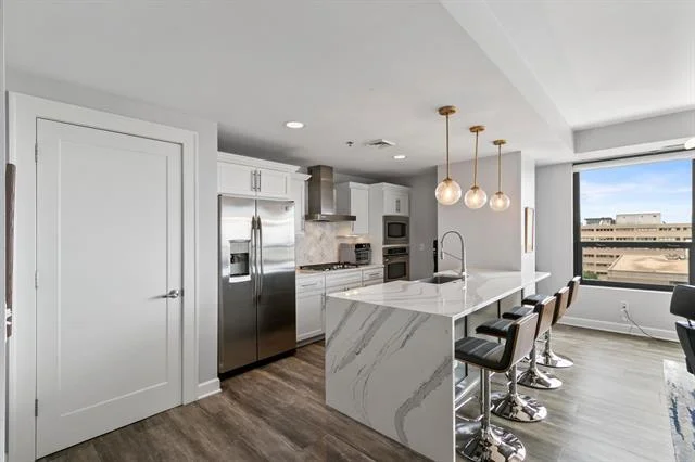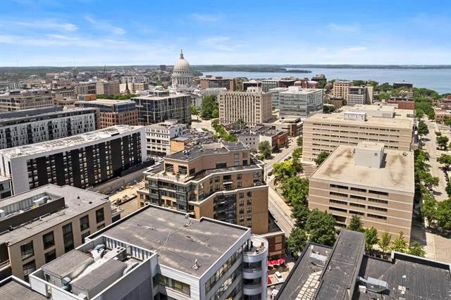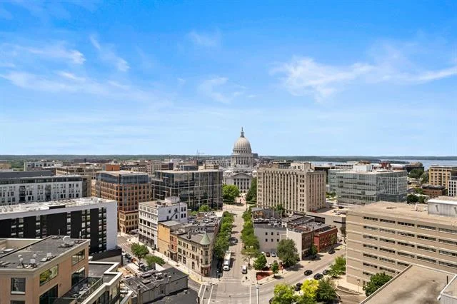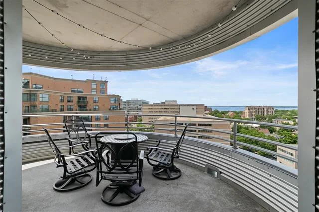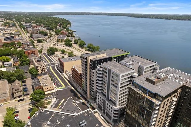 Desirable open floor plan at the luxury Marina Condominiums in downtown Madison! Oversized windows offering expansive city view w/partial views of Lake Mendota and Monona. Oversize balcony with gas convenience port, spacious living/dining/kitchen area, gas fireplace, many built-ins! Walk in closet(s). Many updates include Cambria quartz counter tops, Solera farm sink, tiled backsplash, LVP flooring. Murphy bed in 2nd bedroom with en-suite full bath. In unit storage. 2 parking spaces #1 and #96.
